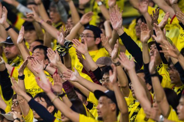 公式グッズ「オリジナルレインポンチョ」の販売数は雨天時平均350%増。スタンドを染める黄色の波が選手の心拍数を最大12%上昇させるという医学的調査結果も。